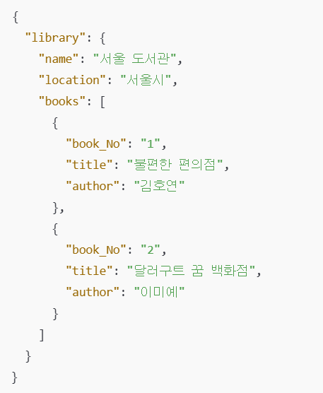 도서 목록의 경우 객제+배열로 이루어진 혼합구조이다.