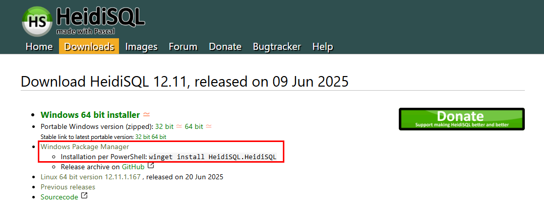 Installation per PowerShell: winget install HeidiSQL.HeidiSQL