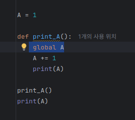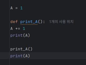 왜냐면 맨처음 정의된 A랑 지역 안에 들어있는 A는 개별적이기 때문이다.