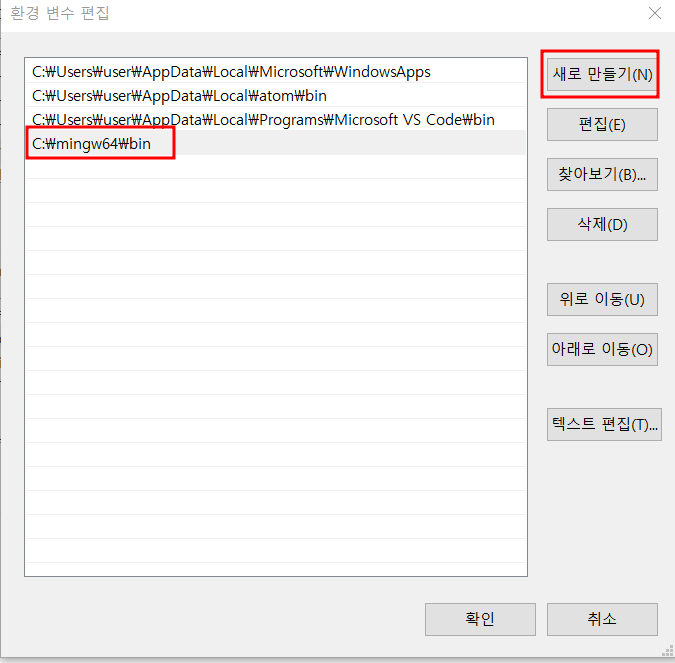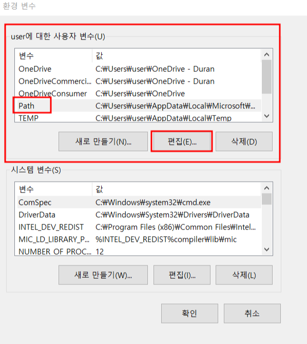 <- 사용자변수 > [Path] 클릭 > [편집] 클릭