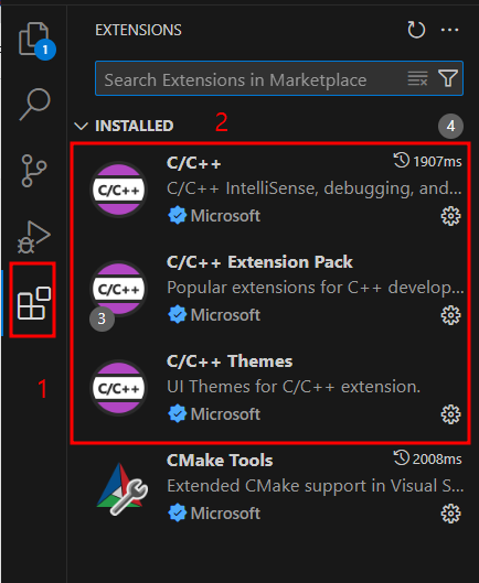 2. vs code를 실행하여 extension에 들어가 c/c++ 을 설치한다.