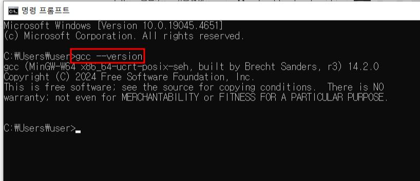 7. cmd 창을 열어서 gcc가 잘 깔렸는지 확인해준다.